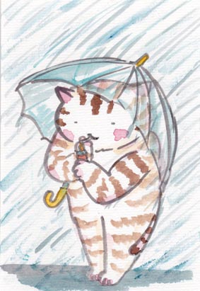 コンビニ前で雨にうたれにゃがらも