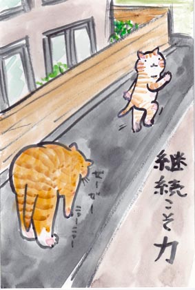 前には進まないとにゃぁ