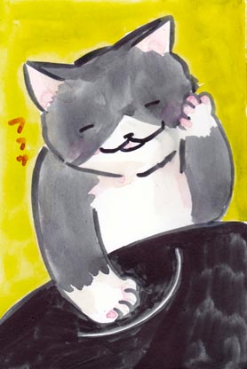 ニャにやらにっこりと楽しそうな事を考えているようす