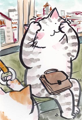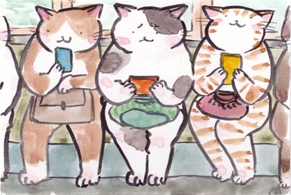電車にのると最近は皆さん手のひらに小さな電子物体をおもちですにゃあ