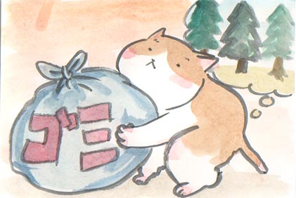 もう少しゴミのでない生活がしやすくにゃったら良いのににゃあ