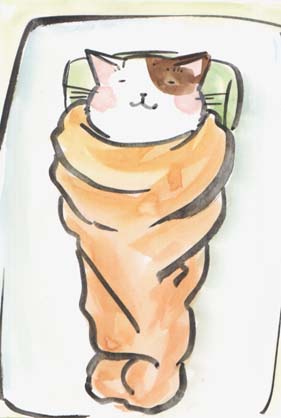 うまいこと毛布をピッタリ体に巻きこんで