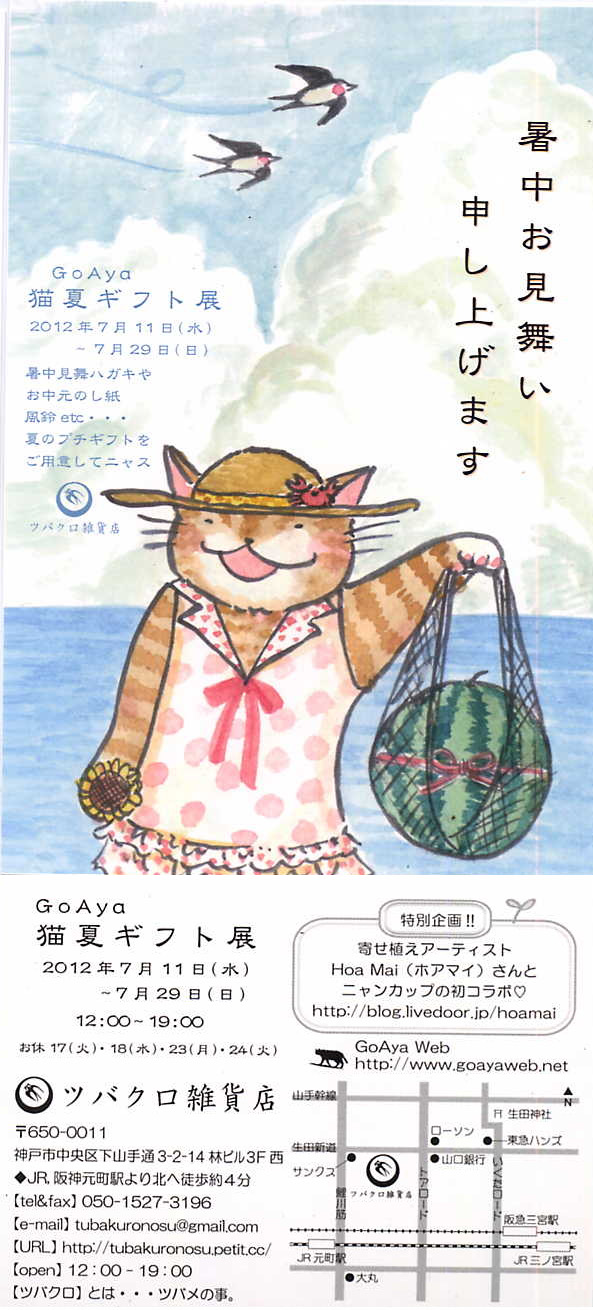 ツバクロ雑貨店にてゴーあやの猫夏ギフト展を開催予定でっす