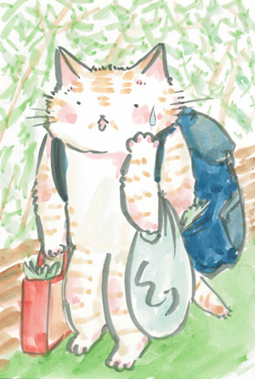 猫が「まいど今日も来ましたで」