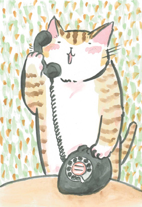 と電話する私です